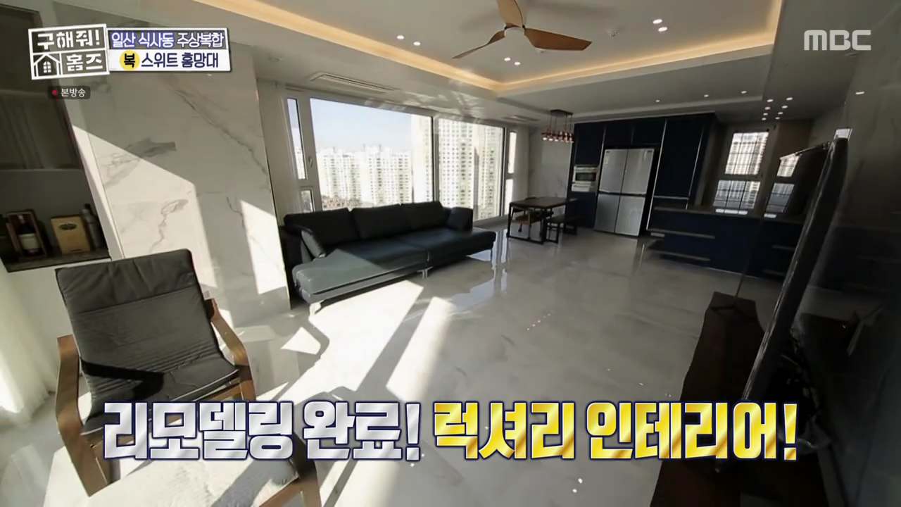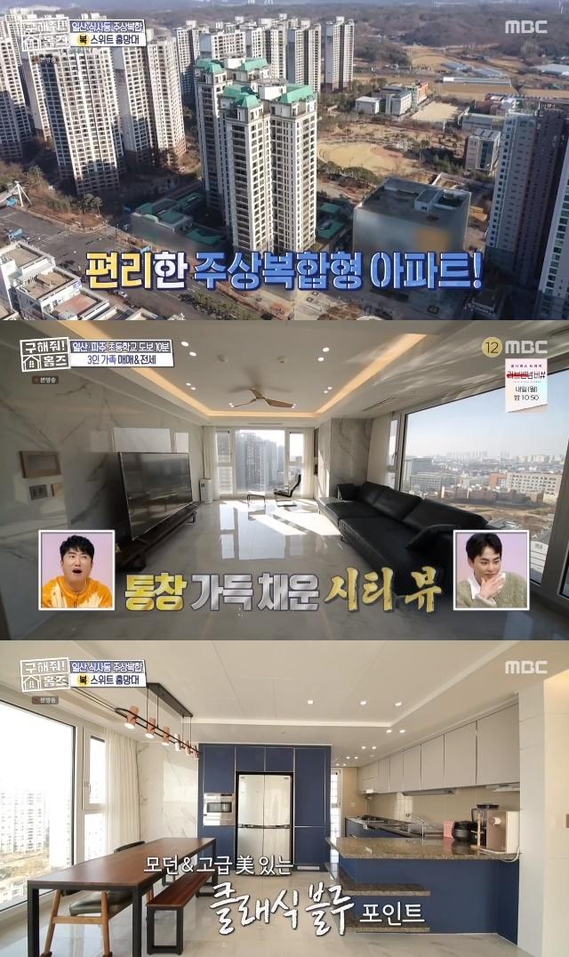 구해줘홈즈에서 덕팀은 일산동구 식사동에 위치한 주상복합 아파트 스위트홈망대를 소개했다. “집주인이 작년에 올 리모델링했다”는 설명으로 기대감을 준 이 집은 현관에서부터 입을 다물지 못하게 하는 ‘비앙코 카라라’ 인테리어를 자랑했다. 집안으로 들어선 박나래는 “입이 찢어진다”며 놀랐고 양면 통창에 가득 담긴 시티뷰가 등장해 덕팀 마저 놀라게 했다.